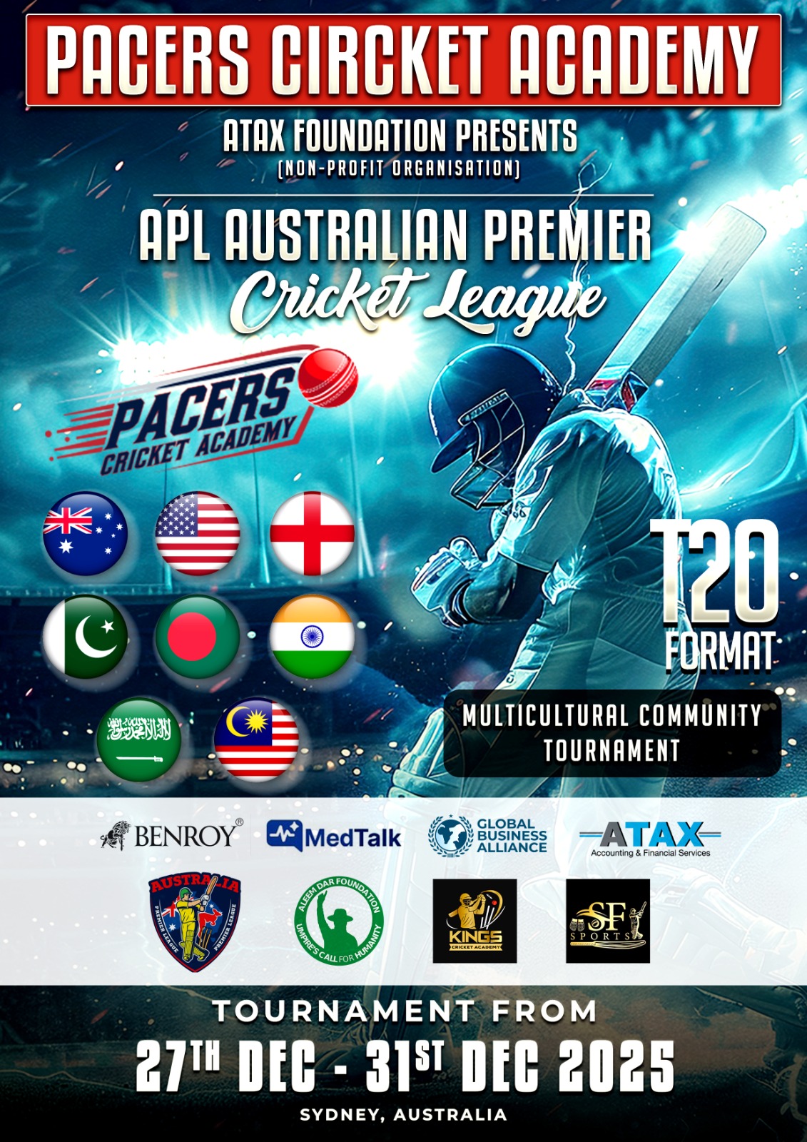 The Australian Premier League (APL), to be held in Sydney from 27th to 31st December 2025, is a multicultural community and international cricket tournament uniting local and overseas teams on one prestigious platform.